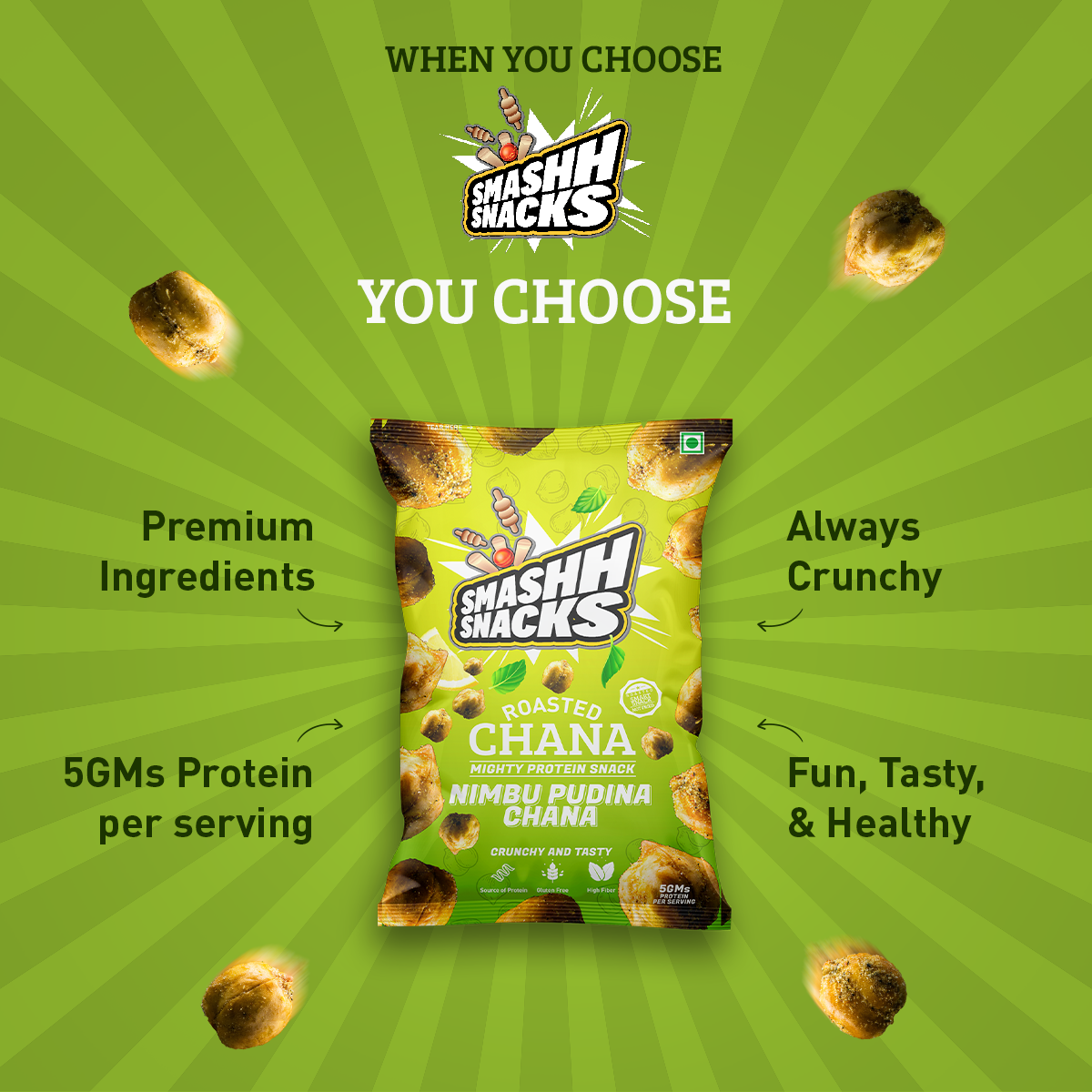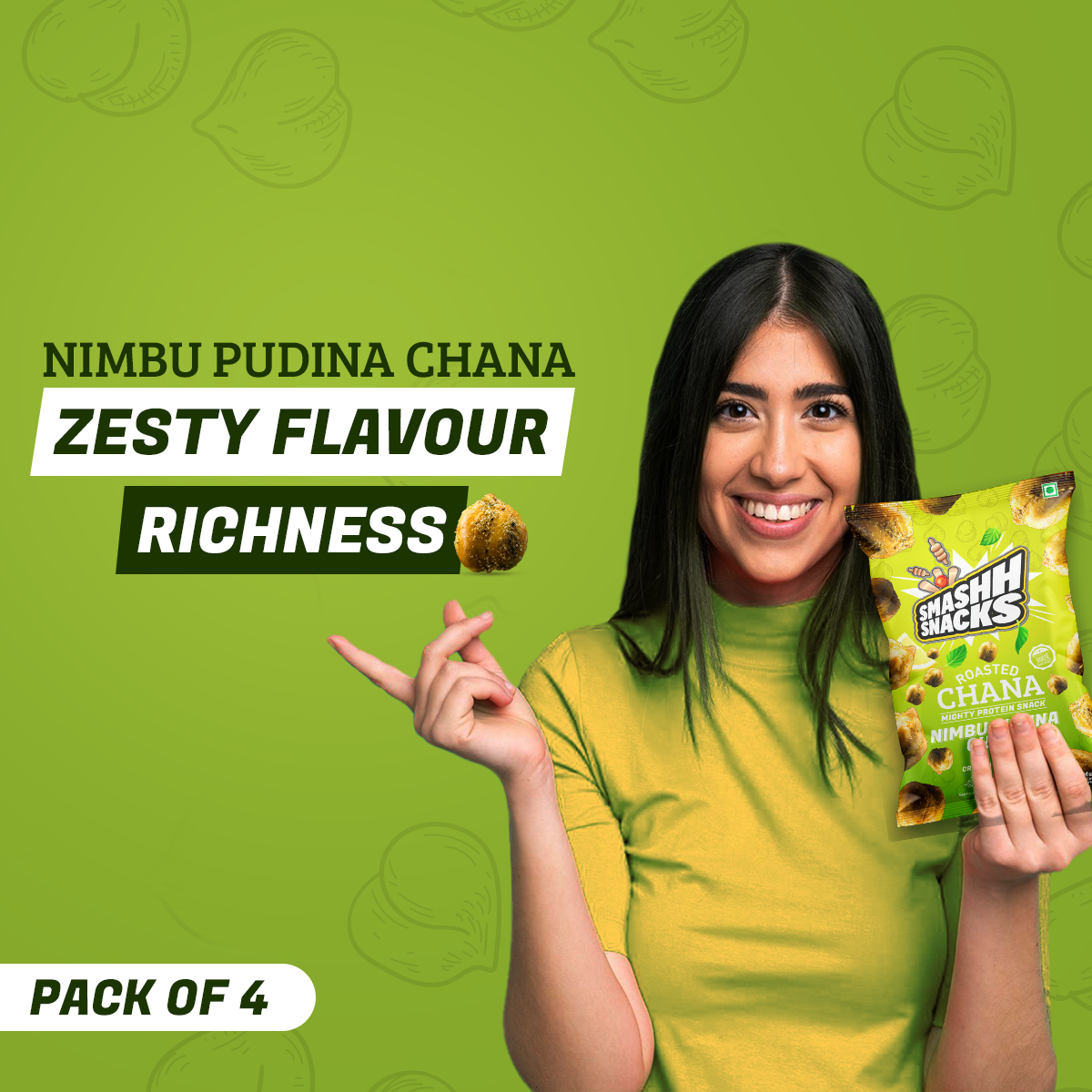 - Versatile Snacking: Whether enjoyed solo as a crunchy snack or added to party platters, Smashh Nimbu Pudina Chana is a versatile option suitable for any occasion. They're perfect for picnics, road trips, or simply as a tasty treat to enjoy on the go.